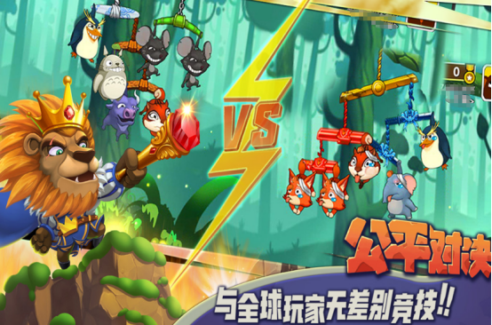 以物理弹射为核心玩法的策略竞技产品,提供超50种动物角色,各具专属攻击逻辑与弹道特性。美术采用Q版2D卡通风格,角色设定拟人化且辨识度高。支持排位对战与冒险闯关双线模式,前者侧重实时操作与预判博弈,后者提供人机练习环境,帮助新手掌握角度、力度与连锁触发等关键技巧。