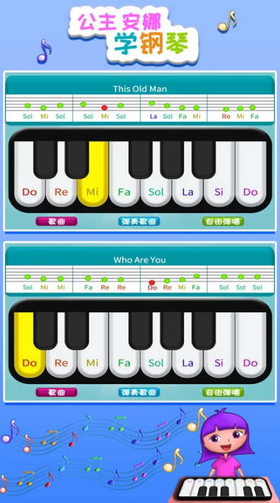 专为儿童设计的钢琴启蒙工具,内置大量经典童谣曲目,每首乐曲均配套原创动态绘本——音符以跃动图形呈现,随节拍逐个浮现,强化视听同步记忆。提供标准谱面跟练与自由即兴双模式,所有钢琴音色采用真实三角钢琴采样录制,保真度高。支持边弹边唱功能,帮助孩子在互动中建立音高感知与节奏意识,潜移默化培养音乐素养。