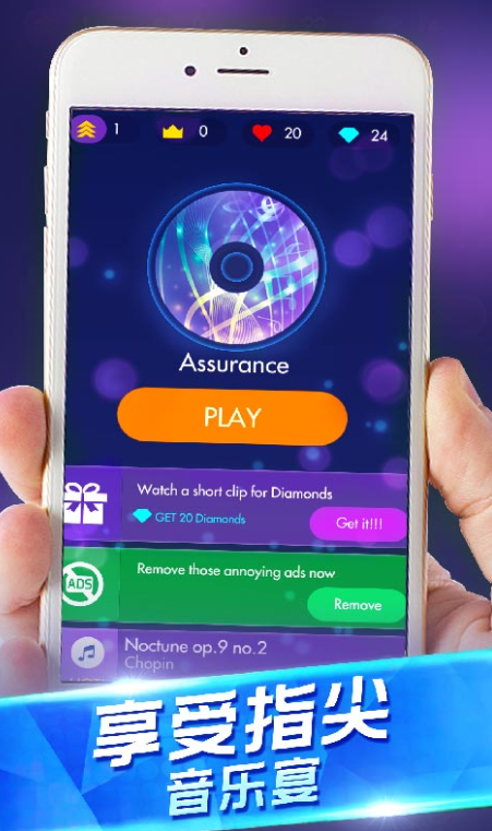 采用全屏触控钢琴键布局,响应灵敏,支持单指单音与多指和弦操作。正确击键即时触发粒子光效与背景律动变化,构建强节奏可视化体验。曲库按星级划分五级难度体系,涵盖《致爱丽丝》《卡农》等经典片段及原创练习曲。通过渐进式关卡设计,系统化训练手指独立性、力度控制与节奏稳定性,零基础用户亦可稳步建立演奏手感。