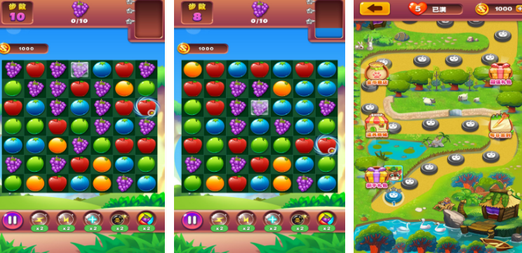 融合三消逻辑与目标驱动型收集机制,玩家需在限定步数内滑动屏幕,使三个及以上同种水果呈横/纵/斜线排列以触发消除。每关设定差异化收集指标——例如“累计消除草莓50个”或“单局获取香蕉图标3次”,达成后解锁新水果类型及特殊道具。关卡递进式引入障碍物与连锁反应机制,策略深度随进度自然提升。