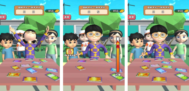 灵感源自经典拍卡玩法,游戏复刻了卡牌翻转的核心物理反馈:玩家与AI对手轮流击打桌面,利用气流使对方卡片翻面,成功即获得该卡。所有卡牌均具独立编号与稀有度标识,含限定版插画与动态边框效果。立体化对战场景支持多角度观察,收集图鉴系统实时追踪获取进度,强化长期留存动力。