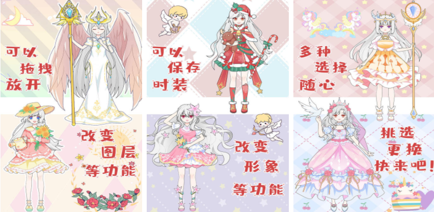 本作采用手绘质感美术风格,主角是一位形象软萌的甜心系公主。游戏提供预设套装式服装组合,含裙装、配饰与鞋履,一键即可完成整体造型切换;同时也支持自由混搭模式,允许玩家打破套装限制,自主搭配上装、下装、头饰、项链与鞋子等部件,充分释放个性化审美表达。操作直观,适合初次接触换装类游戏的新手用户。