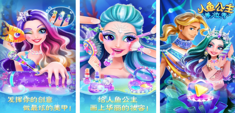 故事舞台设定于深海王国,玩家将协助人鱼公主筹备海洋盛典。初始提供基础服饰库,后续可通过任务解锁贝壳耳坠、珊瑚发冠、珍珠手链等特色海洋风单品。造型模块覆盖全身:从鱼尾裙摆纹理、鳞片光泽度,到海藻造型发饰、荧光水润妆效,再到闪钻美甲图案,均支持精细化编辑。强调自然元素与幻想美学的融合,突出清新灵动的视觉调性。