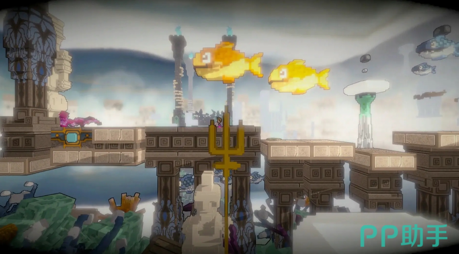 本作融合平台跳跃与视错解谜双重玩法。玩家在沙漠、深海、云巅等超现实场景中移动,需实时操控摄像机角度,使原本悬空的落点在视觉上“连接”至可踏区域,或将倾斜的平面修正为水平支撑面。场景美术采用低饱和度渐变色调与柔焦光影,营造静谧而富有呼吸感的梦境质感,解谜过程兼具操作精度与心理放松体验。