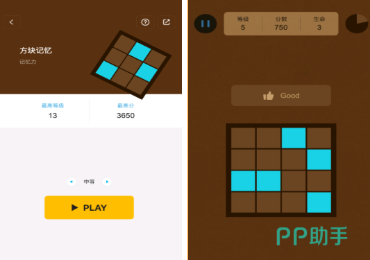 聚焦神经可塑性训练的专业级工具,含颜色差异辨识、网格方位记忆两大主干模块。其中“方块记忆”要求用户在0.8秒闪现后,准确复现蓝色方块所在坐标;“色彩识别”则通过渐变色阶对比强化视觉分辨与短时存储能力。接入全球统一排行榜,实时同步各区域玩家成绩;版本更新持续追加不少于45个全新训练关卡,覆盖空间定位、色彩映射、序列重构等多元记忆子技能。