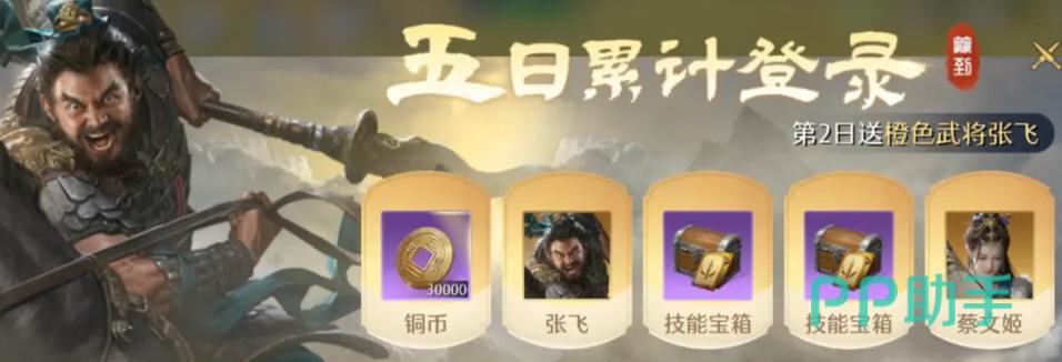 首先是预抽卡,这个只要能参与必定能拿到一个橙将,而且这个活动是常驻的,滚服也能参加,所以大家可以先不急着选,等抽到了合适的武将后根据储备情况来选合适的搭配。然后是开局5天登录送张飞和蔡文姬。