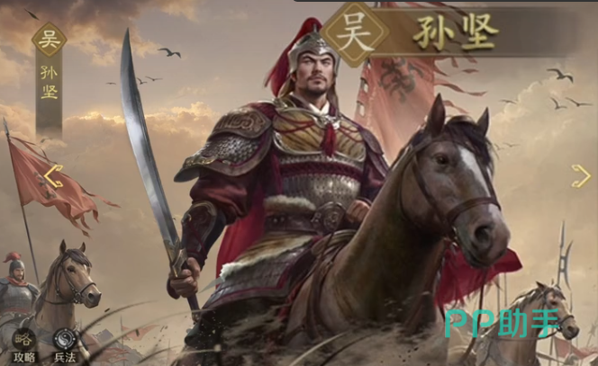 孙坚的主将技“勇挚刚毅”会让我方受到的伤害降低30%,且被动技打出的伤害提升30%持续6秒的时间,他的自带技“江东猛虎”能在受到普通攻击的时候有20%概率进行一次反击,造成武力伤害并且有30%几率施加上威压状态。
