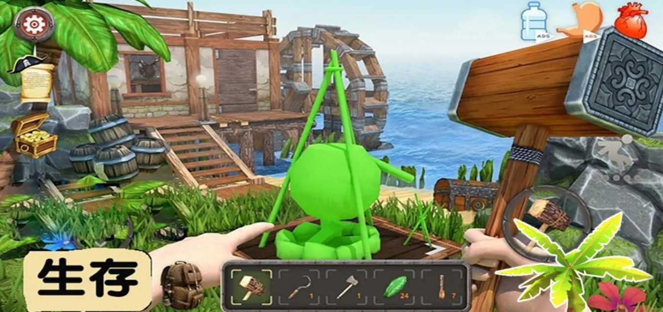 采用双舞台生存架构:前期依托漂流木筏获取海洋资源,后期登陆岛屿建立永久据点。物理引擎精准模拟海浪对木筏的侵蚀效果,需定期修补船体并加固锚链;岛屿植被系统具备生长衰减机制,砍伐后需等待72小时再生。武器系统包含32种手工制作装备,从石斧到电磁脉冲枪共设6级科技树;食物链设计严谨,生肉需经熏烤或腌制处理方可安全食用,否则将触发寄生虫感染debuff。