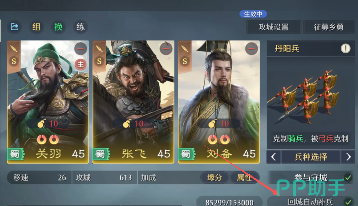 当大家正式开启战斗,或者正在抵御敌军的话。那就可以开启右下方的自动征兵,这时就会为大家自动补充不同类型的士兵,不过也要注意自己的资源是否足够。因为士兵数量一旦被消灭太多的话,那就要消耗粮草、元宝等材料,方能继续补充新的兵力!