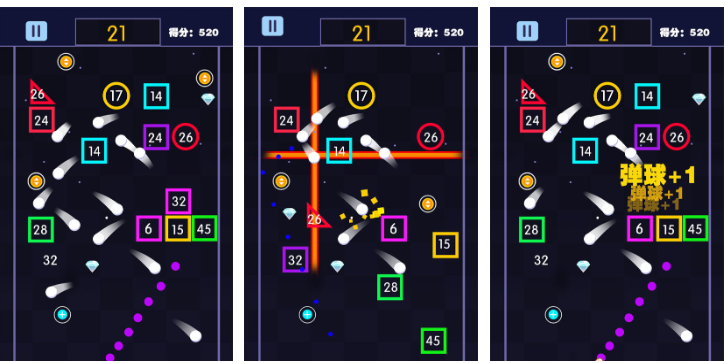 本作以“数字方块消除”为核心机制,玩家可一次性发射多枚弹珠,通过多次反弹触发连锁清除。每个障碍物标注明确击打次数,清零即消失,配合实时积分结算系统,强化目标感与成就感。高速弹道轨迹、紧凑节奏与硬核物理反馈,使其成为追求爽感与策略平衡的弹珠玩家首选。
