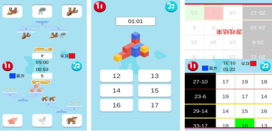 支持全年龄段适配的双人对抗模式。界面采用左右分屏设计,关卡类型涵盖数值比较(大小、轻重)、限时心算等,强调反应力与基础运算能力。胜负判定依据单位时间内答题准确率,兼顾知识巩固与竞技趣味。