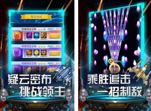 以经典竖版飞行射击为框架,玩家操控战机自动锁定并攻击外星敌机群。关卡中穿插Boss战与障碍规避要素,支持金币收集与道具强化系统,包括火力增强、护盾加成与导弹连发等升级方向。操作简洁但具备成长维度,适合碎片化时间体验高强度空战节奏。
