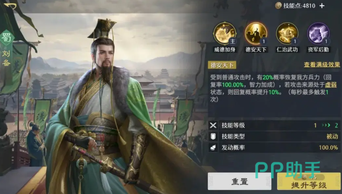 技能系统,很多人也喜欢称呼为战法,每个武将初始有2个技能,主将技只有在担任1号位主将的时候才会生效,需要怒气释放。另一个则是固有技,会随着进阶得到提升。剩余2个技能格子则会逐步解锁,可以根据阵容需求自由搭配。前中期技能点事比较缺,稳妥做法是对已装备的技能均匀提升,而不是只升某一个。