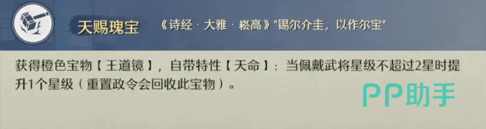 武将进阶,这个也就是很多玩家所说的红度,是来开同等级武将差距的重要方式,每个武将一共可以5次进阶,其中135次会有强化技能效果,第24次则直接提升属。进阶所需要的信物消耗是11223,一共9个,属于需要长期规划的资源。王道政策中还有一个“天赐瑰宝”,低星阶段可以额外提升1星,对于核心武将来说是很关键的加速途径,利用好可以缩短成型的周期。