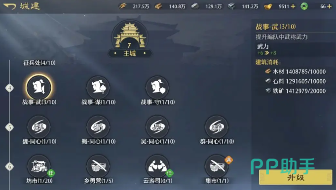 内城科技,这个是每个玩家最终都能稳步拉满的系统,随着主城等级的提升,各类科技也会逐步解锁,既能直击提升武将的武力或者谋略属性,也能针对特定的阵营、兵种给到额外的加成。其中军事府还可以提升带兵的数量,等于是直接放大的武将的实机作战能力,在资源允许的情况下,优先升级往往可以带来最高的收益。