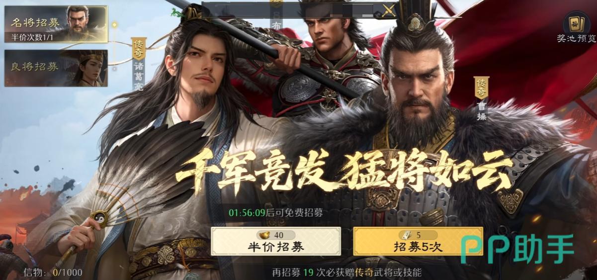 首先,它的这个保底机制是每20抽可以获得传奇武将或者技能,注意也是有几率获得技能的。这里的传奇武将就是大家常说的橙将。单次出橙的几率在8%,中规中矩。目前公认的四皇有诸葛亮、孙权、曹操、吕布,如果抽到其中任意都以作为核心来重点培养。