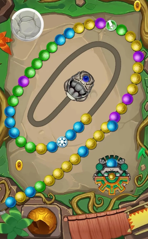 经典祖玛玩法的轻量化重构版本。核心规则清晰:发射同色珠子,三连即消,阻断滚动路径。每关设定明确目标距离与初始球链长度,考验预判力与策略衔接。消除反馈爽快,音效清脆,界面色彩明快,无复杂成长线或资源囤积压力,专注提供即时解压与逻辑满足感,适合碎片化时段快速进入状态。