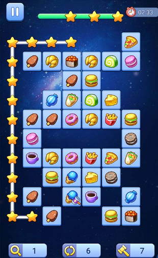 以真实感强的美食素材为核心视觉载体,将食物造型转化为可交互消除单元。每局初始布局随机生成,食材种类与位置组合丰富多变。玩家需依据空间路径判断可行连线,考验观察力与逻辑预判能力。关卡目标设定差异化明显:部分要求限定步数内清除全部图案,部分则聚焦分数累积或指定品类优先消除,提升策略纵深感。