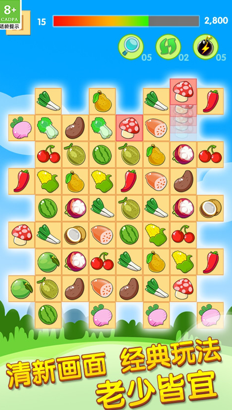 本作在传承核心连线机制基础上,融入多样化内容结构。界面采用清爽配色与圆润UI设计,融合水果、萌宠等主题元素,支持单指滑动操作。除基础连线消除外,还整合方块匹配等变体规则,提供快节奏与慢节奏双模式选择。关卡编排注重节奏变化,配合细腻消除动画与轻快音效,强化沉浸体验;剧情线自然嵌入流程,避免割裂感,提升整体叙事连贯性。