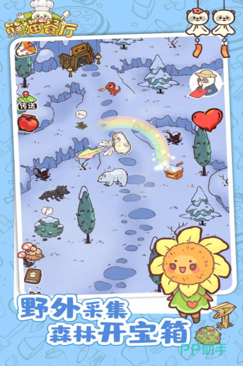 在这款模拟经营类游戏中,你将继承熊猫爷爷留下的传统餐厅,从零开始打造专属美食空间。所有食材均需深入山林自主采集,考验玩家的规划意识与执行效率。通过自由组合基础原料,可研发出数十种特色菜品,满足不同客人的口味偏好;同时支持全开放式餐厅布局设计,墙面装饰、桌椅摆放、动线规划均由玩家一手定制,创意表达空间充足。