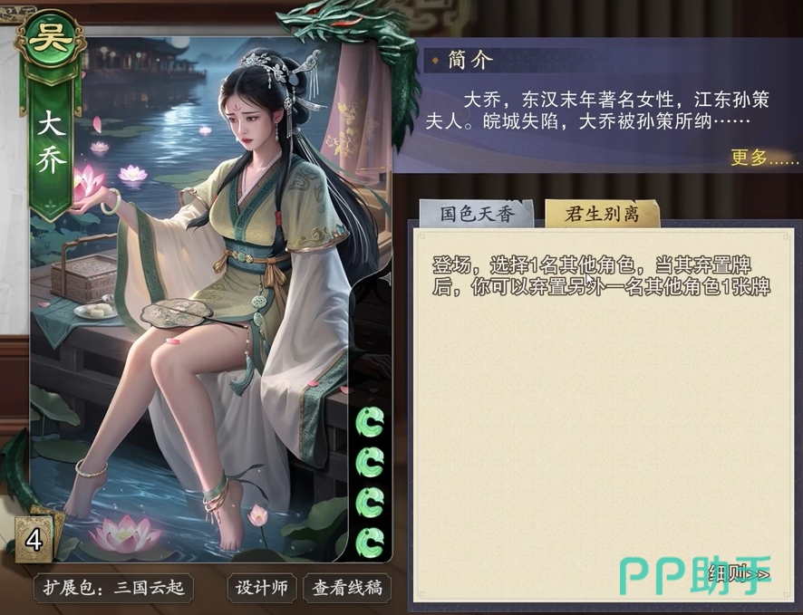 该组合依托甘宁“断江”技能机制——只要其手牌中存在黑桃花色牌,即可在出牌阶段对其指定目标发动一次拆牌;更关键的是,甘宁可主动将全部手牌重置为黑桃并弃置回牌堆,随后摸取等量新牌,从而持续刷新触发条件。若大乔选择甘宁作为登场武将,则在其弃牌瞬间可发动“君生别离”,额外指定一名其他角色并弃置其一张手牌。这种“甘宁每弃一次,大乔必跟一拆”的协同模式,使本组合在单回合内实现2次以上精准拆解成为常态,尤其擅长针对依赖手牌链运作的核心输出位。