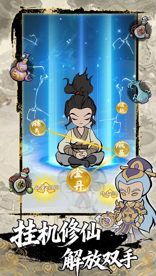 作为竖屏修真养成代表作,其核心机制围绕“时间即修为”展开。角色离线状态下仍持续运转周天,自动积累灵气并突破小境界。在线时可进入“秘境探幽”副本挑战蛟龙、夔牛等异兽,获取炼器所需陨星铁、凝神露;或参与“宗门论道”活动,以丹方、符箓、法宝图纸为奖励目标。当境界突破至大乘期,玩家将解锁“开宗立派”系统,自主设计山门布局、收徒授业、发布宗门任务,真正实现从散修到一方道祖的身份跃迁。