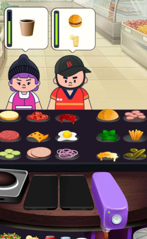 以中东风味沙威玛与美式汉堡为双主线的经营模拟游戏。玩家需在限定时间内完成切肉、烤制、加料、卷裹、打包全流程,应对不同顾客的口味偏好(如忌口、辣度、酱料组合)。食材供应链系统支持升级冷库、采购品质分级原料,提升出品稳定性。门店等级提升后可解锁开放式厨房、外卖专线等新功能,拓展营收维度。