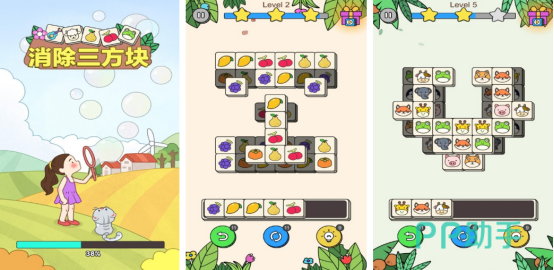 以水果主题为视觉载体,构建清新治愈的三消体验。规则简洁明确:拖动任意方块至底部空白区域,使三个相同图案横向或纵向相邻即可消除。关卡设计严谨,共含2000余关,难度梯度平滑;另有十余种特色障碍与道具组合,增强策略深度与重玩价值。