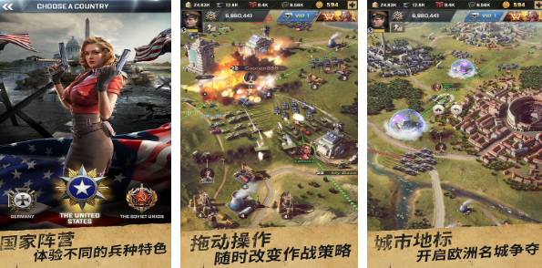 以第二次世界大战为宏大舞台,支持多国阵营选择——包括英国、法国、德国、中国等主要参战国。玩家需在全域战略地图上部署基地、调度三军(陆军、海军、空军),实时应对前线变化。资源生产、部队训练、科技升级与跨战区协同构成核心循环;战役规模覆盖局部冲突至集团军级会战,高度还原历史战役节奏与战略纵深。