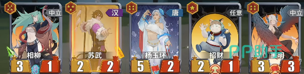 这个禁军会在其阵亡以后自动召唤,之后的玄武和饕餮是配合其打辅助的角色,这两位角色中前者用于复制任意卡牌的效果,可以选择一张卡牌复制其效果就是说可以配合杨玉环打双禁军,后者用有增加触发次数的效果。