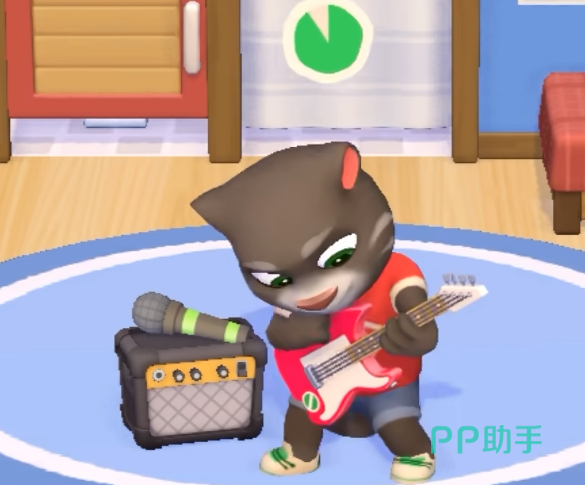 刚进入游戏之后,我们所扮演的是咱们所熟悉的汤姆猫。一开始咱们在自己的房间内醒来,我们可以先对操作进行熟悉,比如点击电吉他,汤姆猫便会前去进行弹奏。之后会获取到爱心,然后提升等级。