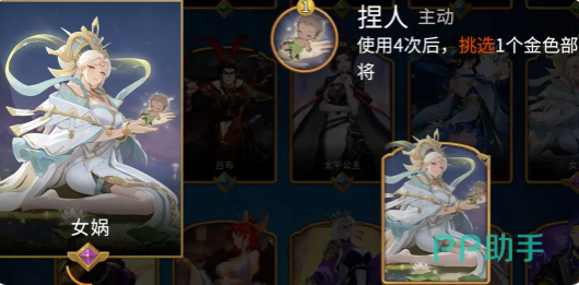 女娲的“捏人”技能被玩家广泛称为高性价比理财工具:每使用4次即可获得一张金色部将,且所获卡牌星级随当前商店等级动态提升。技能触发节点为第4、第8、第12回合,节奏清晰、回报稳定。开局阶段应保持空城策略,避免盲目刷新或购卡;仅当出现李秀宁或李元芳等优质低费卡时,才建议优先拿取。即便未及时抽到高费卡,也可依托优质卡牌达成六人口羁绊,实现战力稳扎稳打。由于技能可重复激活,整体成型周期显著快于多数统帅。