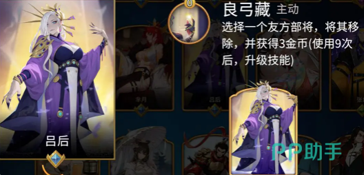 吕后具备极强的金币再生能力,其核心机制为:移除己方一名部将即可获得3枚金币;升至二星或三星后,若执行出售操作,金币收益将翻倍。前期应优先招募带有“上阵即触发招募效果”的武将,并在效果触发后立即出售,兼顾经济积累与战力维持,实现双线协同推进。