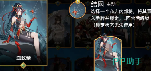 蜘蛛精的“结网”技能被公认为经济流核心辅助技:仅需消耗1枚金币即可锁定任意一张目标部将,锁定时效仅为一回合,实际影响可忽略不计。这意味着玩家可在每个回合以最低成本精准控卡,无需额外花费金币刷新,大幅提升购卡效率。通过阶段性售出低星卡回本,既能保障经济持续增长,又能同步维持队伍战斗力。该技能对阵容兼容性极佳,中期根据所摸到的阵营自动适配,快速定位核心卡并投入金币购买上场。其机制专精于“对子理财”,几乎无升本压力,全程节奏流畅。