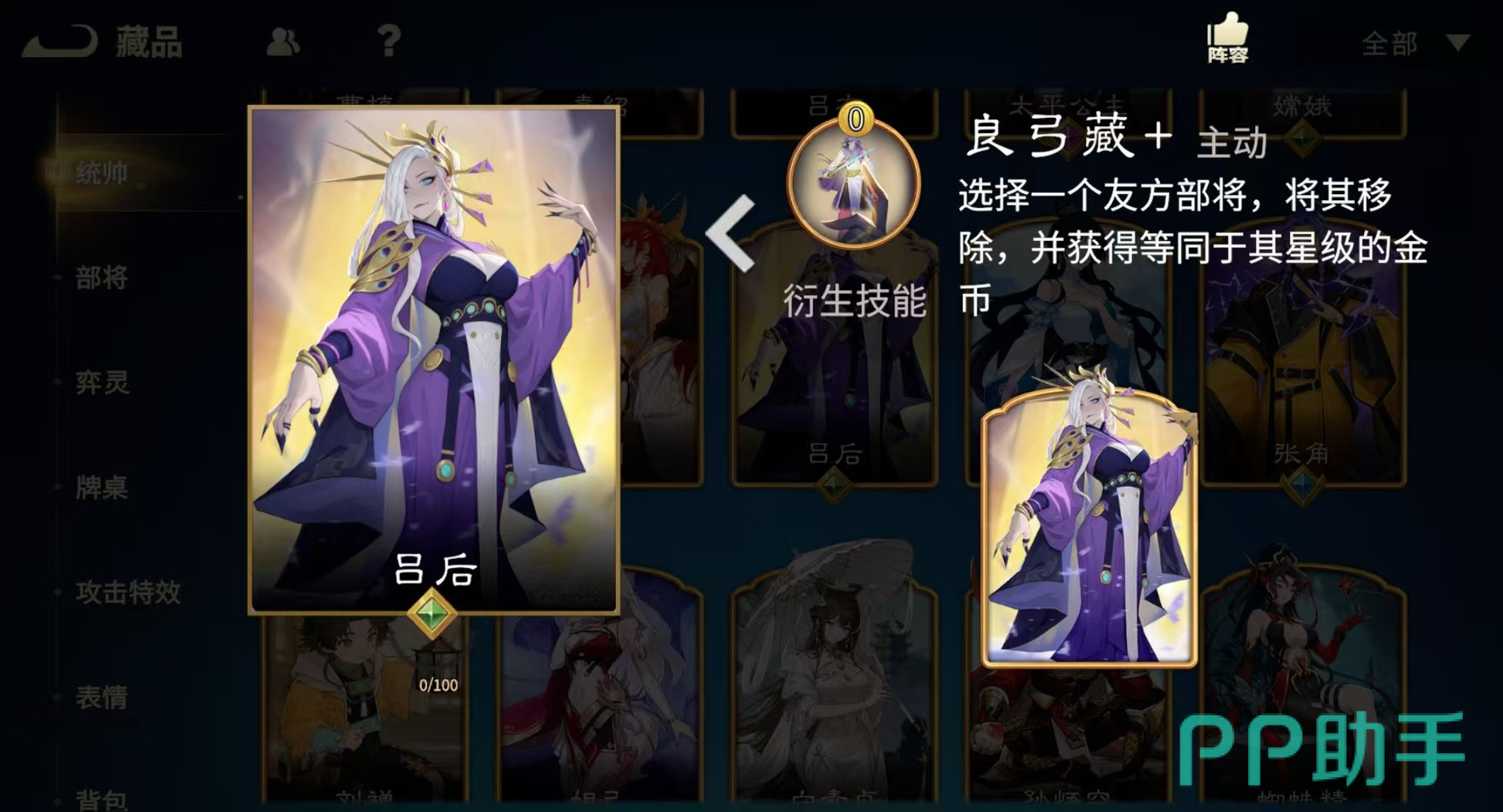 在统帅技能方面,比较有代表性的是吕后,她的技能特点是可以出售一张手中的卡牌,然后获得金币,该技能最初只能获得3金币,使用9次后可以获得等同于卡牌星级的金币。上面这些都是可以帮助大家扩大经济的手段。有了金币之后,接下来就是消耗金币,主要包括购买卡牌、升级商店等,每张卡需要三金币,刷新商店需要一枚金币。这里重点讲一下升级商店,回合数越长,升级商店消耗的金币数量也就越少,所以可以在前期先攒金币,攒到之后一次性再升级,这样更节省一些。