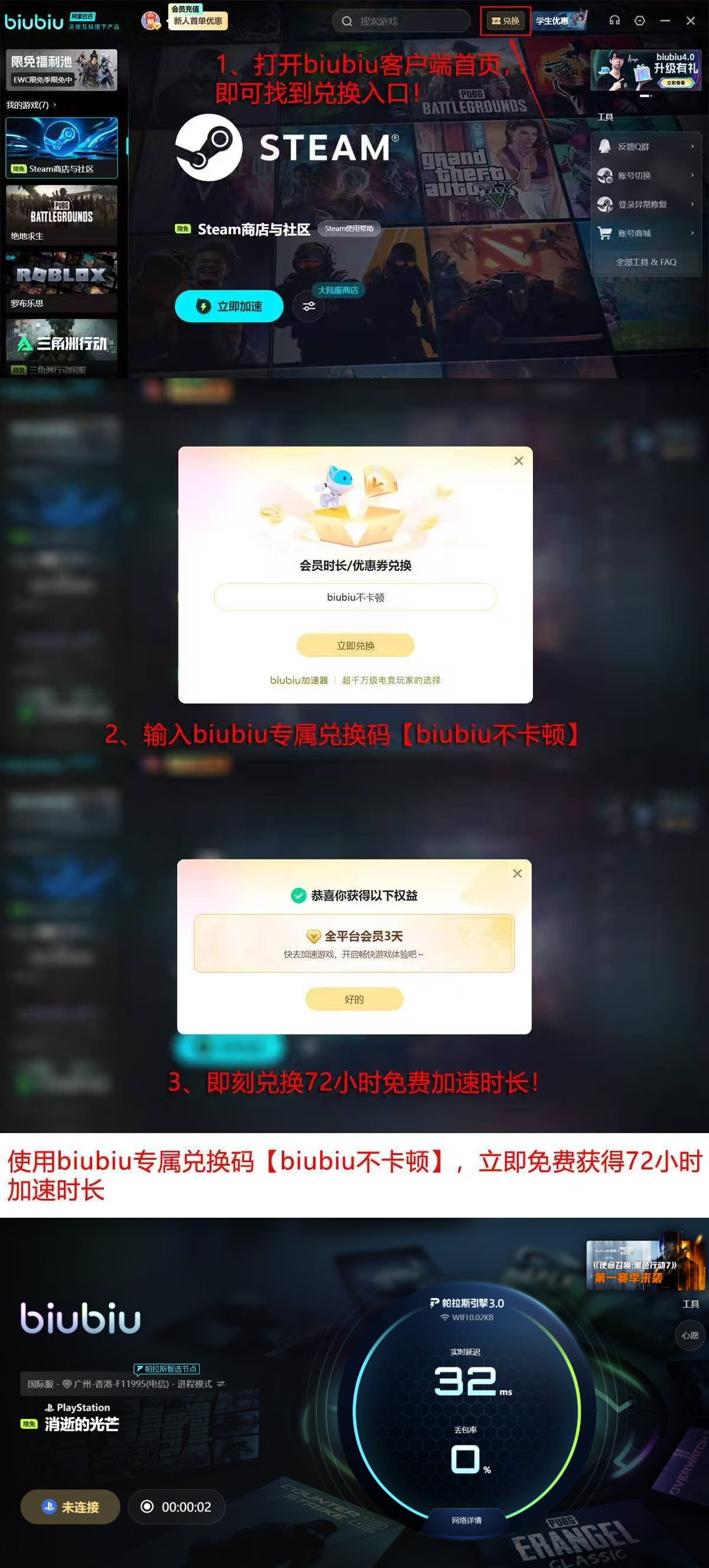 即日起,新用户可通过文中入口领取24小时全平台免费加速权限,零门槛体验专业级网络优化效果。输入兑换口令【biubiu不卡顿】,还可额外获得连续3天加速服务。本次冬促活动周期为12月18日至1月18日,期间开放限免加速池,覆盖包括《消逝的光芒2:坚守人性》在内的海量主流游戏,无需付费即可一键启用低延迟优化通道。