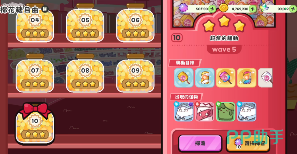 在副本的每个模式上还会分为多个关卡,每次对战结束后会有相应的评价,3星是最高评级,星星的数量也决定了玩家能获得的棉花糖品质。点击查看每个关卡会出现的怪物属性,可以选择一些属性克制的使徒上阵。