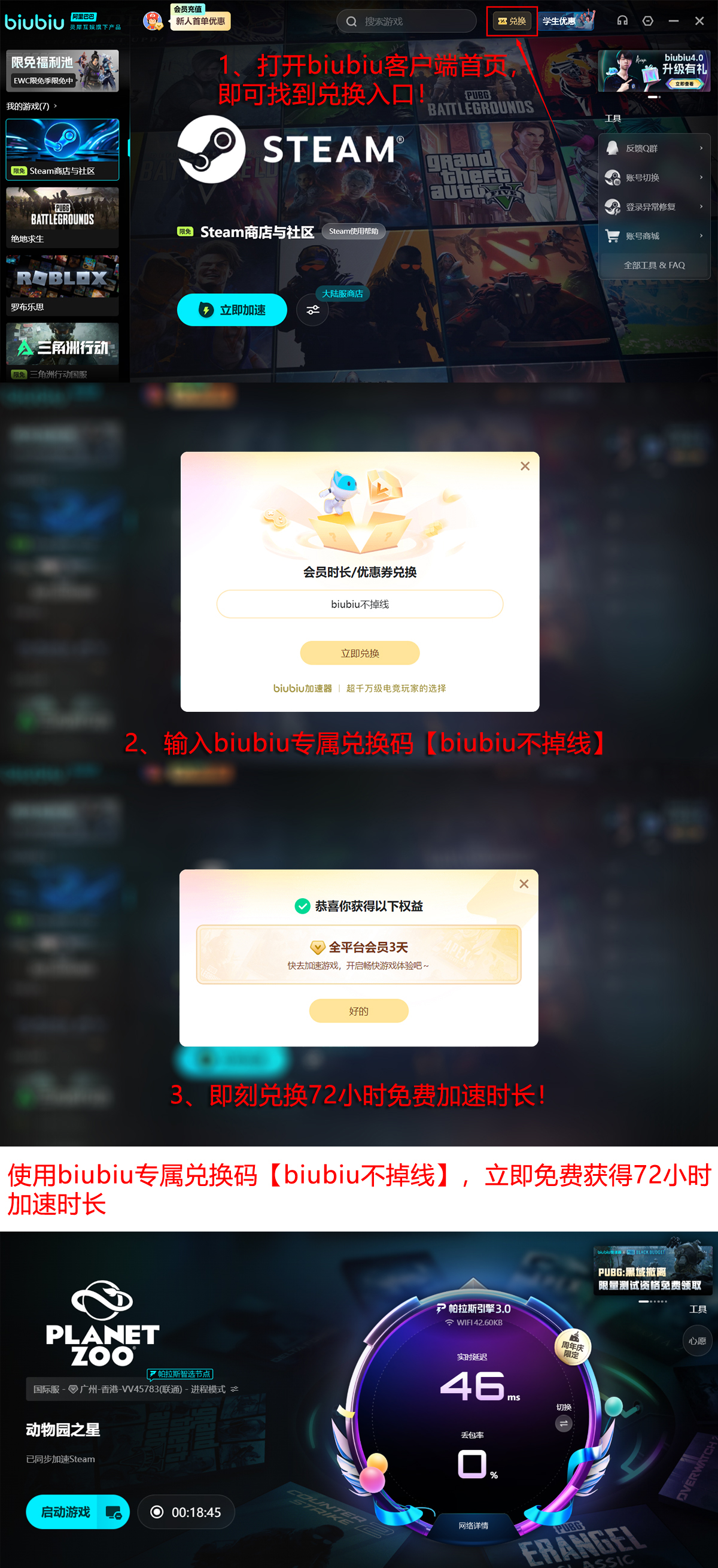值得关注的是,在冬季促销季(12月18日~次年1月18日),biubiu平台正式上线限时免费加速计划,活动期间用户可无门槛调用专属加速资源池,覆盖《动物园之星》在内的多款高热度游戏,实现零成本高效下载。新注册用户还可享多重权益叠加:完成账号激活即赠24小时加速时长;参与【biubiu不掉线】任务后,额外延长72小时,累计最高可达96小时免费加速权限。