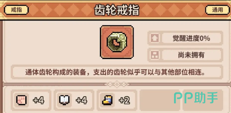 齿轮戒指能让初始魔力得到增加,并且还伴随有造成的伤害增加以及受到脆弱层数减少的效果,属于是前期神器能保证开启满魔力,适用于所有角色。