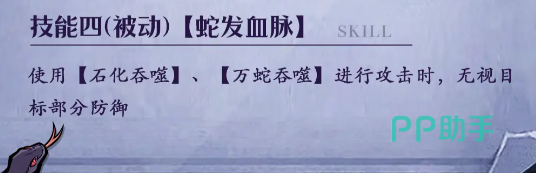 3技能和4技能都是被动,3技能直接提供攻击和生命加成,展现了数值的魅力。4技能蛇发血脉的效果是在石化吞噬和万蛇吞噬的时候可以无视对方部分防御,对付高防御boss或者坦克型敌人的时候很强,也是美杜莎能在中后期副本和爬塔玩法中保持强势的原因。至于怎么培养,一般优先堆输出,生存这一块只要不会暴毙就够用,主要是为了可以撑到触发万蛇吞噬。阵容搭配这一块,要凑一些可以提供控制或者削弱的角色,来最大化美杜莎的被动收益。