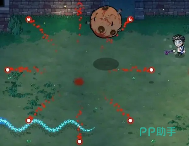 此招应对也很简单,因为弹幕的发射通常会比较远,大家反其道而行之走进boss,就能规避伤害并进行攻击,他的第2种攻击方式是先伸长自己的身子,然后进行压缩,随后发射出红色的滚石,滚石会伴随着追踪效果。