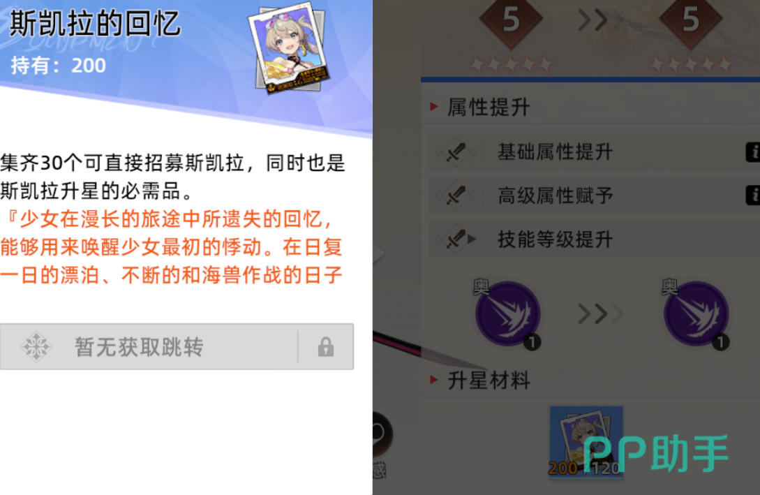 斯凯拉是初始R品级的角色,获取较为容易,基本上抽卡就能轻松获取很多个本体,然后转化成碎片,因此该角色的升星较为容易。后续如果你非常喜欢该角色还可以使用“旅鸟觉醒石”来觉醒该角色。