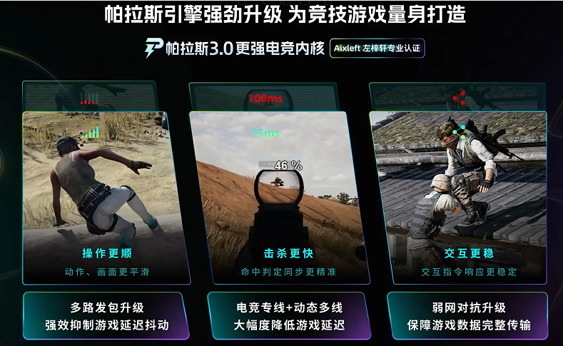 其核心技术底座为帕拉斯引擎3.0,该引擎已在多项职业电竞赛事环境中完成多轮压力验证。在千人级并发接入、持续高强度数据交换等极限场景下,仍能维持毫秒级延迟稳定输出。针对MOBA、大逃杀等高节奏类型游戏,引擎特别强化了UDP数据包调度策略与TCP心跳保活机制,使普通玩家也能获得接近职业级赛事标准的网络体验。