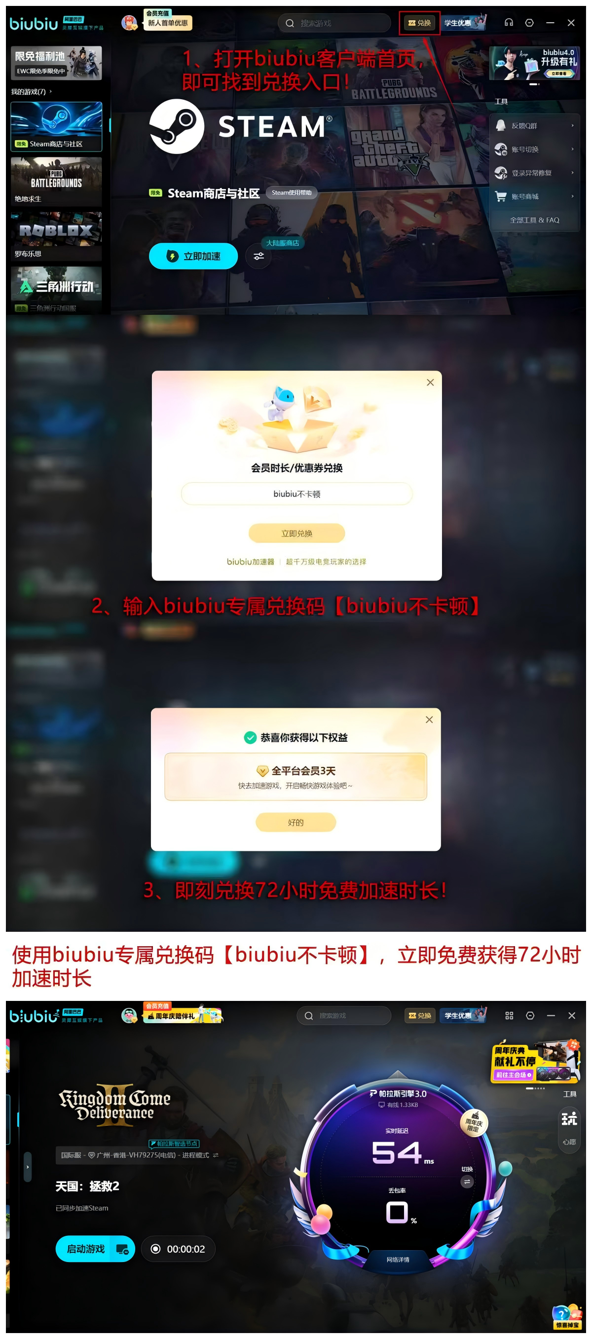 【biubiu不卡顿】口令需妥善保存,新用户可获24小时加速时长,叠加通用口令后总计达96小时,相当于连续四天高强度联网体验,足以完成多数线上合作任务、赛季活动及多人模式全流程挑战。