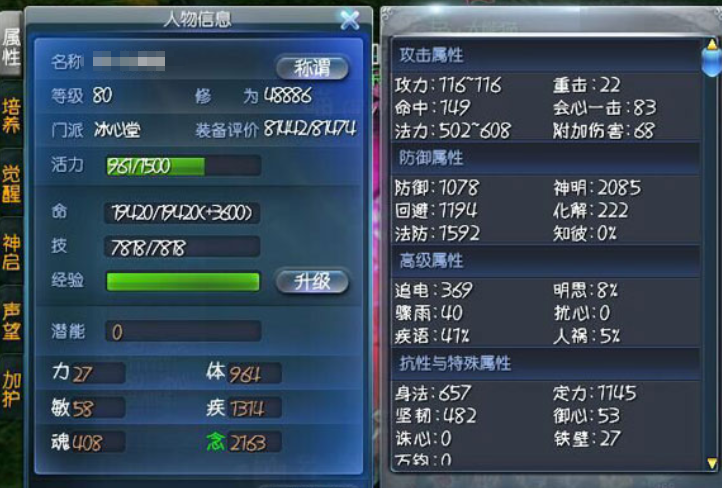大家需要注意的是,角色在进入副本之后,自身的属性是会降低的,需要提升个人的启慧天灵等级来增强属性值。