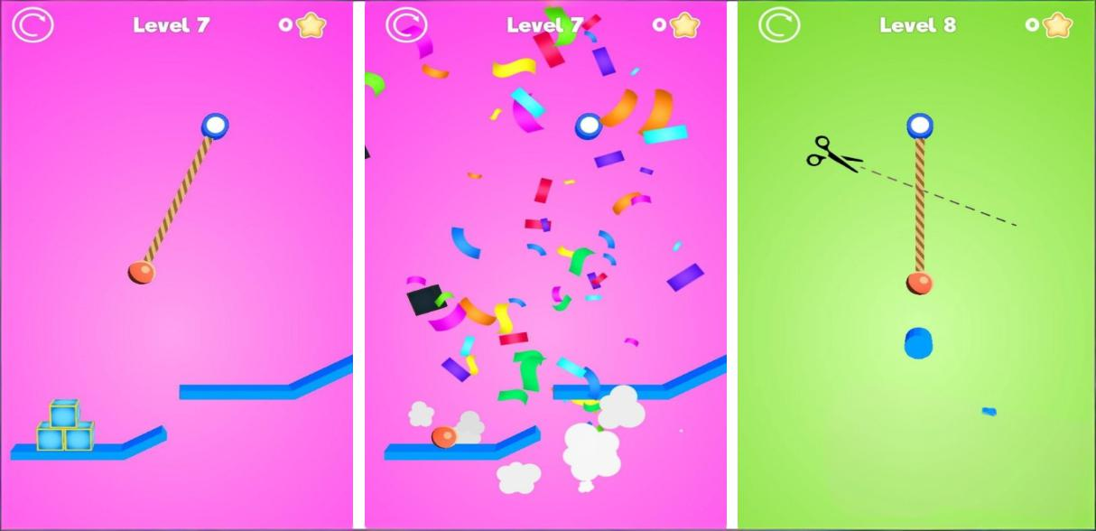 该作聚焦高阶物理推演,关卡围绕“切割触发连锁破坏”展开。玩家需割断悬挂铁球的绳索,利用其下坠动能击碎下方木箱。每关均存在精确的距离阈值、角度限制与碰撞判定区域,错误切割将导致铁球偏移、动能不足或直接脱靶。大量关卡经算法验证确保解法唯一性与步骤严谨性,适合追求极致逻辑闭环的硬核解谜用户。