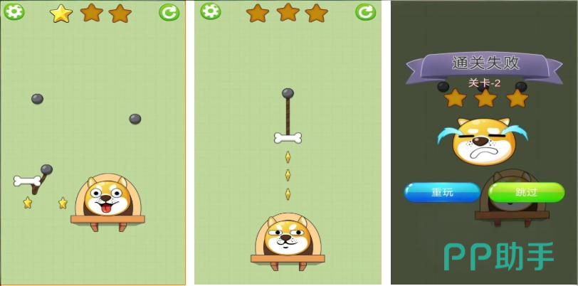 这是一款以物理切割为核心的卡通风格解谜游戏。核心目标是协助小狗获取悬挂于绳网中的肉骨头——骨头被不同结构的绳结系统捆缚,玩家需观察重力方向、绳段承重关系与摆动轨迹,在恰当时机切断特定绳索,使骨头沿预定路径下落至角色口中。清新手绘画面搭配拟真物理反馈与诙谐角色反应,降低理解门槛的同时强化策略趣味性。