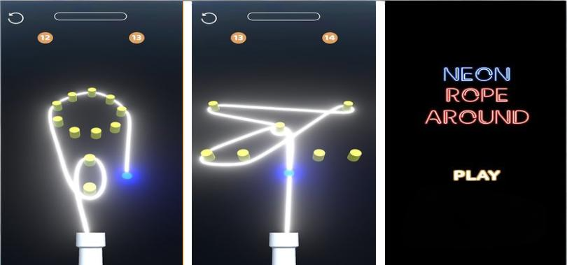 本作以“缠绕固定”为唯一操作逻辑,玩家需将发光绳索精准缠绕于指定锚点,完成对目标物体的约束或牵引。暗色调背景与高饱和度霓虹绳体形成强烈明暗对比,增强视觉聚焦效果。绳索运动轨迹具备弹性反馈与光效拖尾,每一次成功缠绕均伴随节奏化震动与音效响应,营造出显著的解压体验与操作满足感。