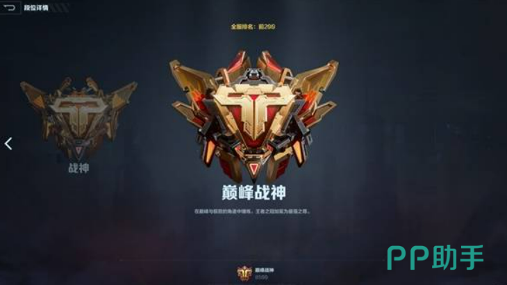 段位体系共设八大层级:青铜、白银、黄金、铂金、钻石、大师、战神、巅峰战神。其中,青铜至大师六个段位各自细分为五个小阶,以罗马数字V(最低)、IV、III、II、I(最高)标识。例如,初始段位为青铜V,晋级后依次为青铜IV、青铜III……直至青铜I;完成该段位全部五阶后,方可晋升至白银V。每达成一个小阶晋升,系统自动发放专属身份铭牌,可在个人资料页或组队界面中展示。当玩家达到战神段位,并在全服排位分排行榜中位列前200名时,即可解锁“巅峰战神”称号——此为当前赛季最高荣誉标识。