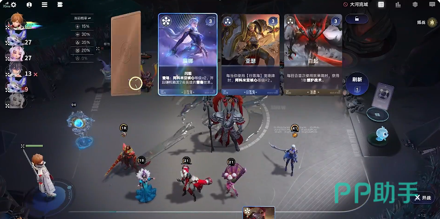 主要玩法就是展开6人对决,玩家们可以从众多棋手之中挑选出自己喜欢,或者比较擅长的展开对局,每回合通过卡牌将英雄召唤出来战斗,且每个棋手都有各自独特的技能,秘技,以及专属天赋,善于利用这些就能有效提高对局的战力。